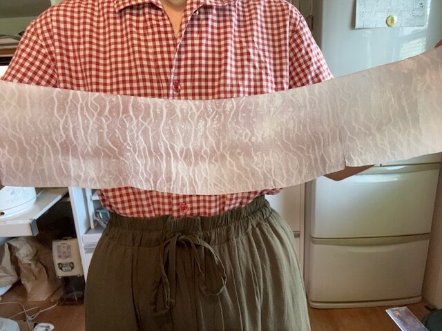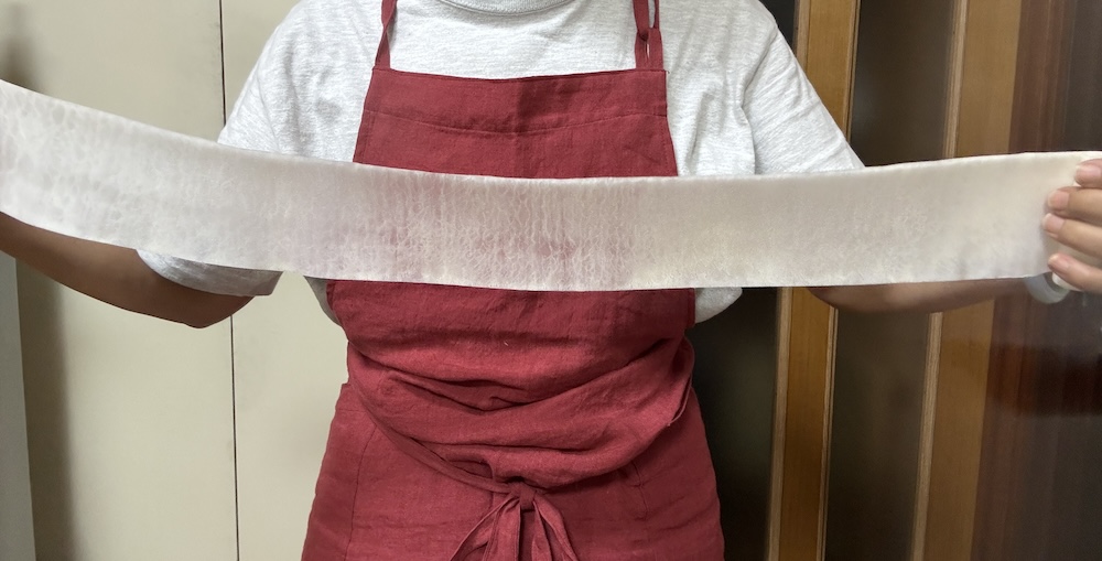 上部(剥いている時は下部)も同じように右手親指で圧をかけているのですが分厚いので透明になるに至っていないということです。