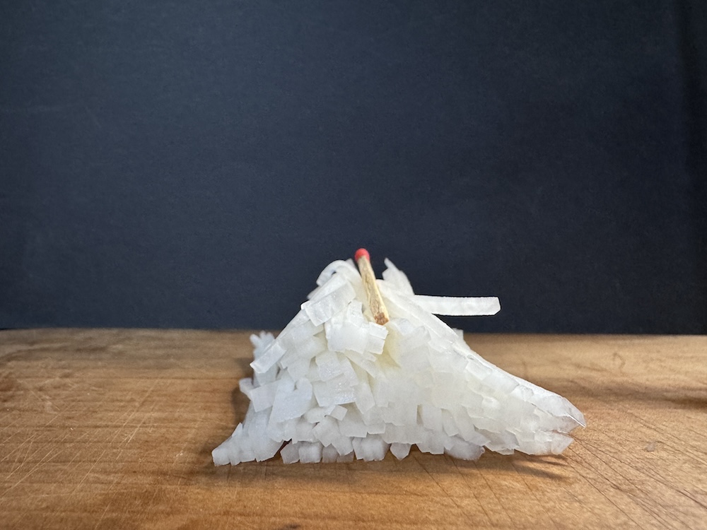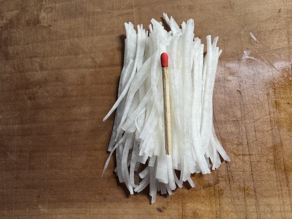 「マッチ棒の1/3の厚さに剥いてマッチ棒の1/3の幅に刻む」ですね。